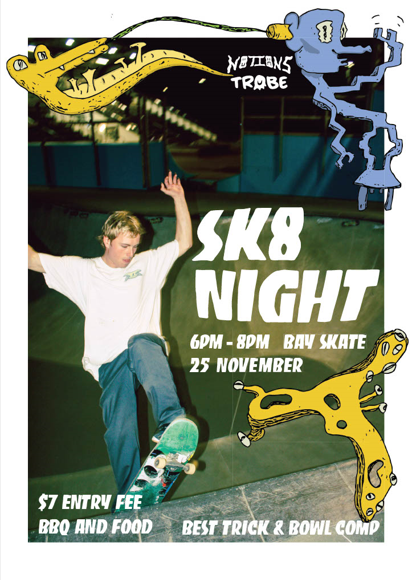 On the 25th of November we are hosting a skate night at bayskate. There will be a free BBQ running and some prizing to give away for best trick and bowl comp . The idea of the night is to get together and have a skate jam and all skaters are welcome no matter your level.